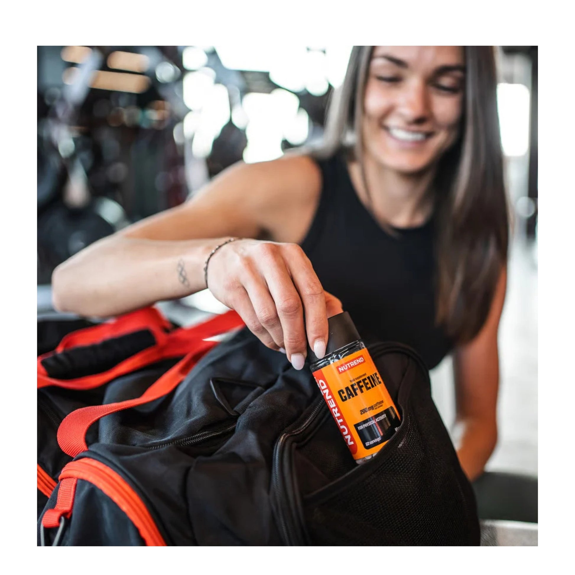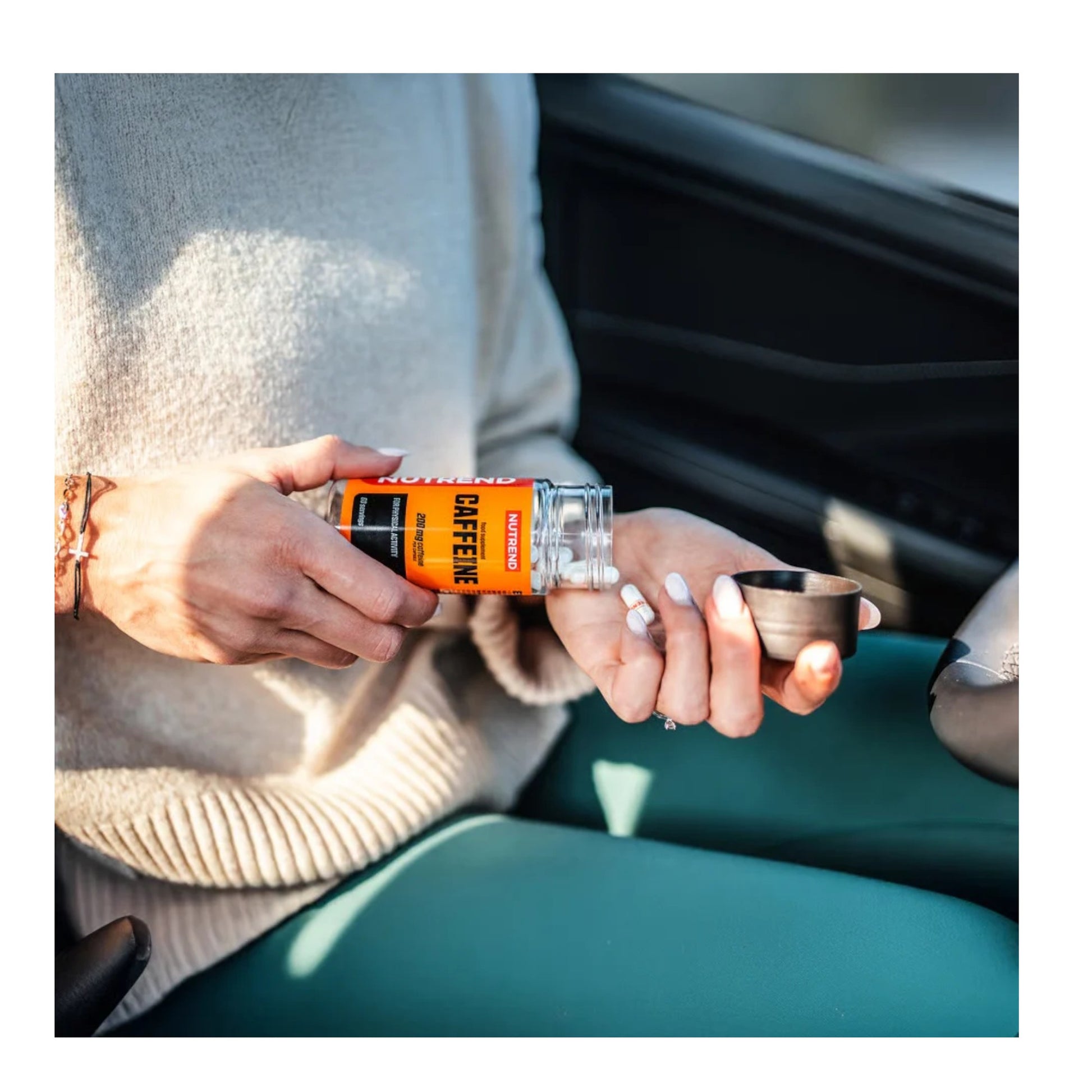 Nutrend Caffeine ofrece 200 mg de cafeína anhidra por cápsula, una dosis efectiva para elevar energía, mejorar el enfoque y potenciar el rendimiento físico y mental.
