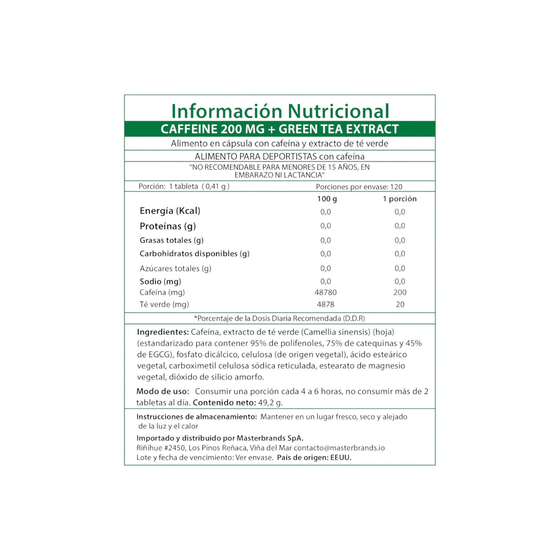 Elaborada por expertos a partir de los mejores ingredientes, nuestra cafeína superior 200 mg está especialmente formulada con extracto de té verde para ayudar a mantener una mayor energía Sin las calorías adicionales que se encuentran en las bebidas energéticas azucaradas.