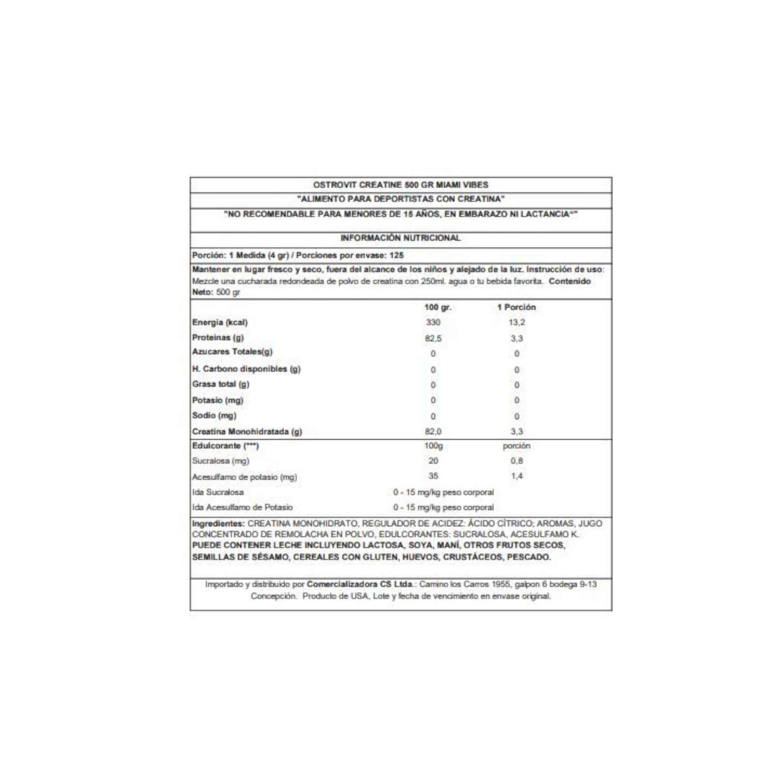CREATINA MONOHIDRATADA 500GR MIAMI VIBES - OSTROVIT