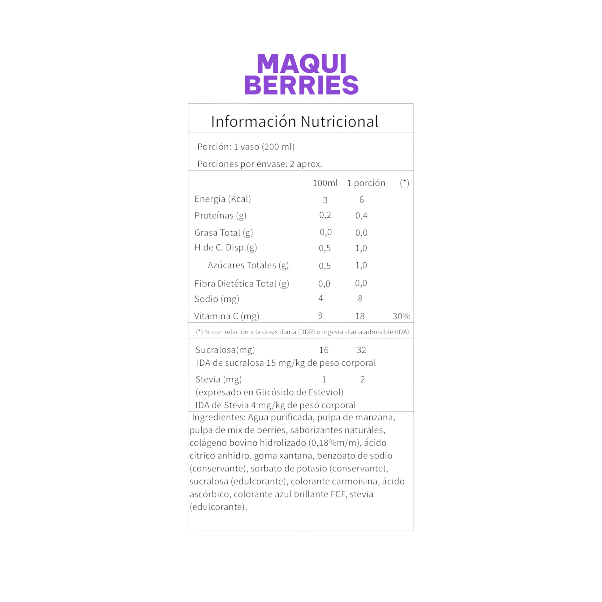 Disponibles en una variedad de sabores frutales y refrescantes como Maracuyá, Maqui Berries, Coco Piña, Limonada Jengibre y Limonada Frambuesa, cada lata ofrece una experiencia única manteniendo los mismos beneficios nutricionales.