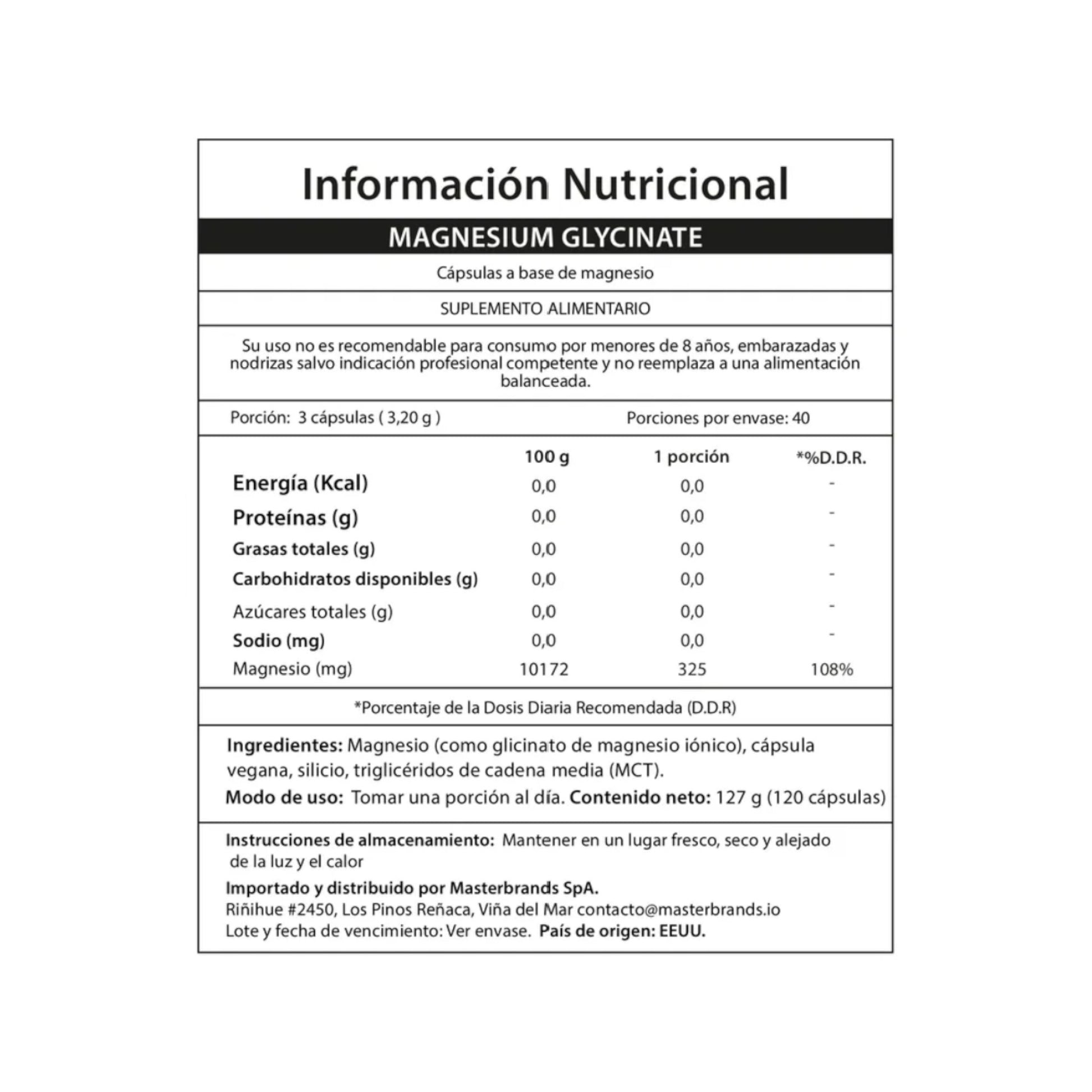 Ingredientes principales: Magnesio como glicinato de magnesio iónico (alta absorción)