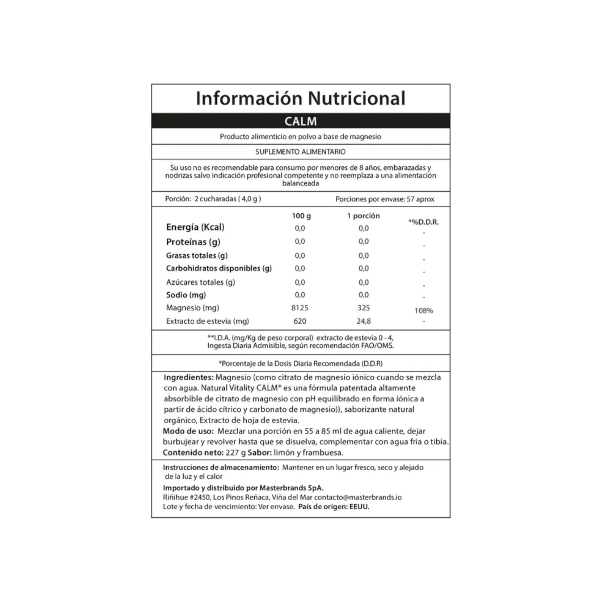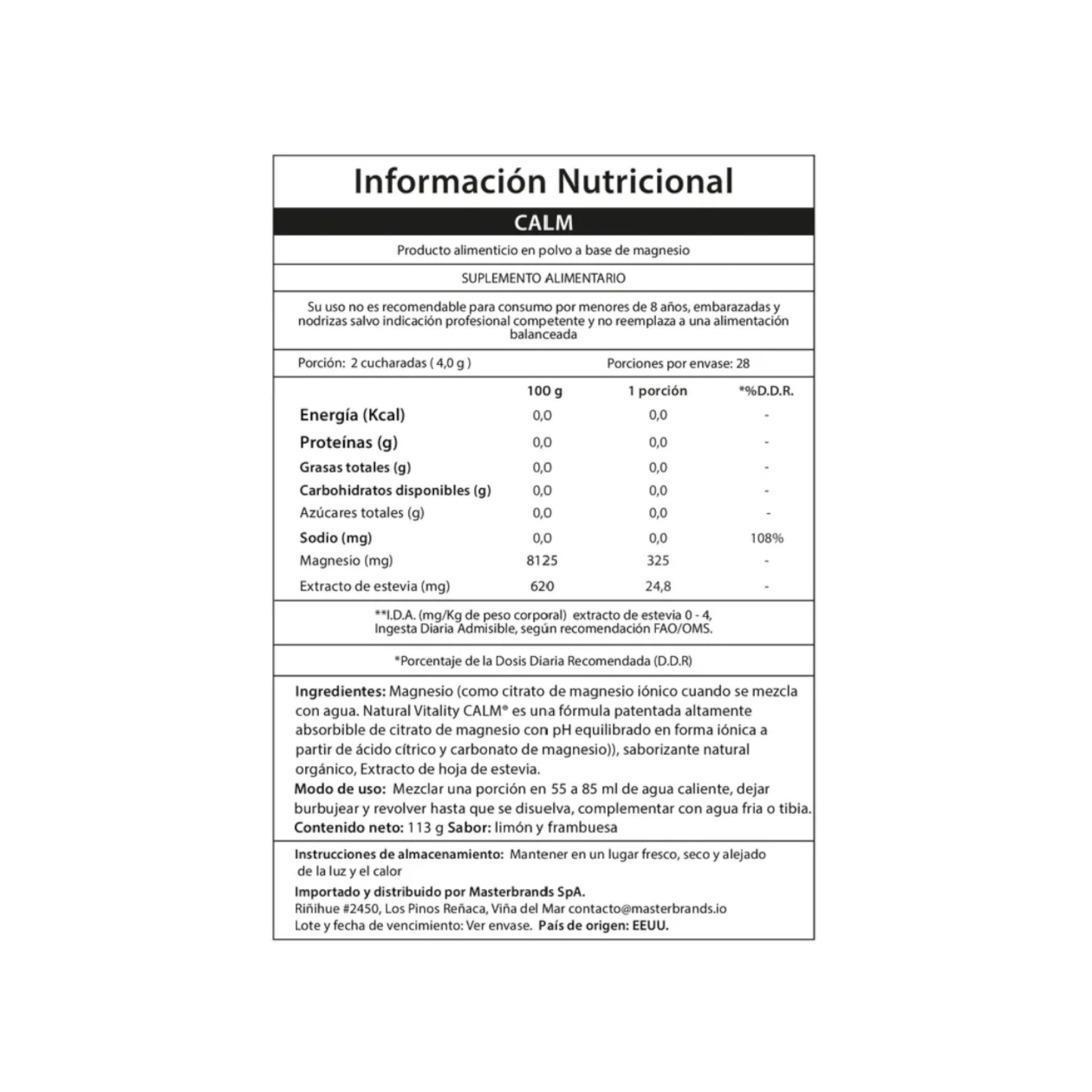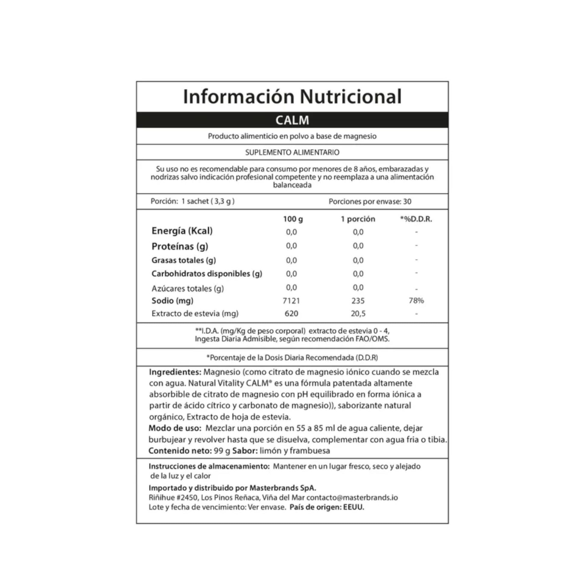CALM Powder Raspberry-Lemon es una fórmula efervescente en polvo con sabor a frambuesa-limón que, al disolverse en agua tibia, libera magnesio en forma iónica de alta absorción. Está diseñada para quienes buscan un suplemento diario que aporte calma, apoyo al sistema nervioso y alivio frente al estrés.