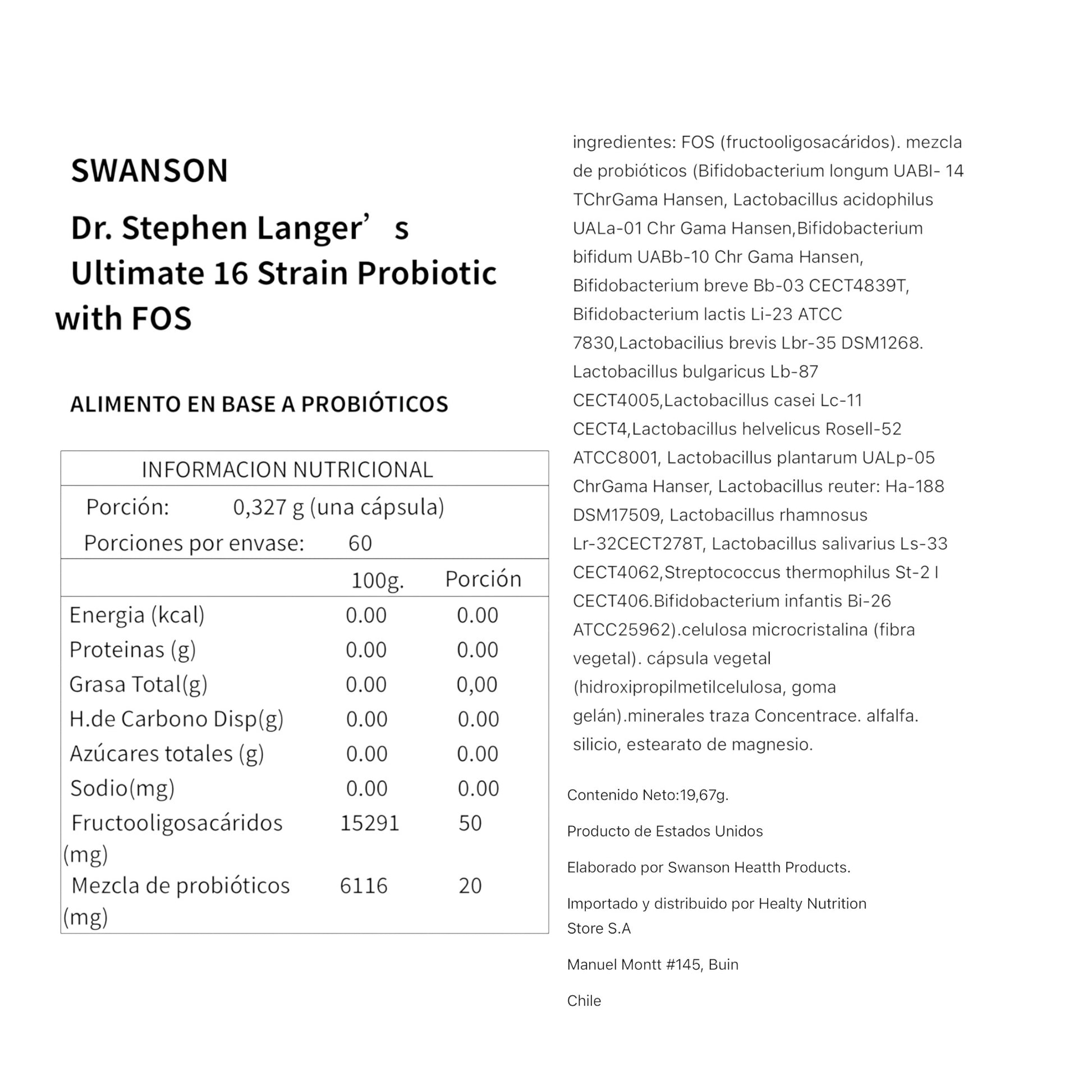 PROBIOTICO ULTIMATE 16 CEPAS + FOS 3.2 BILLONES CFU 60 CÁPSULAS - SWANSON